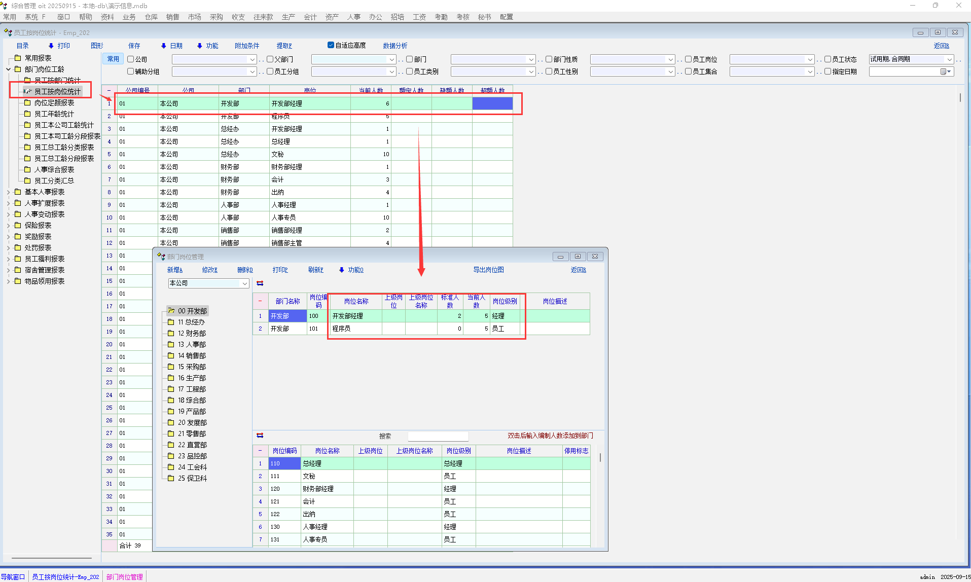 员工按岗位统计   -emp022