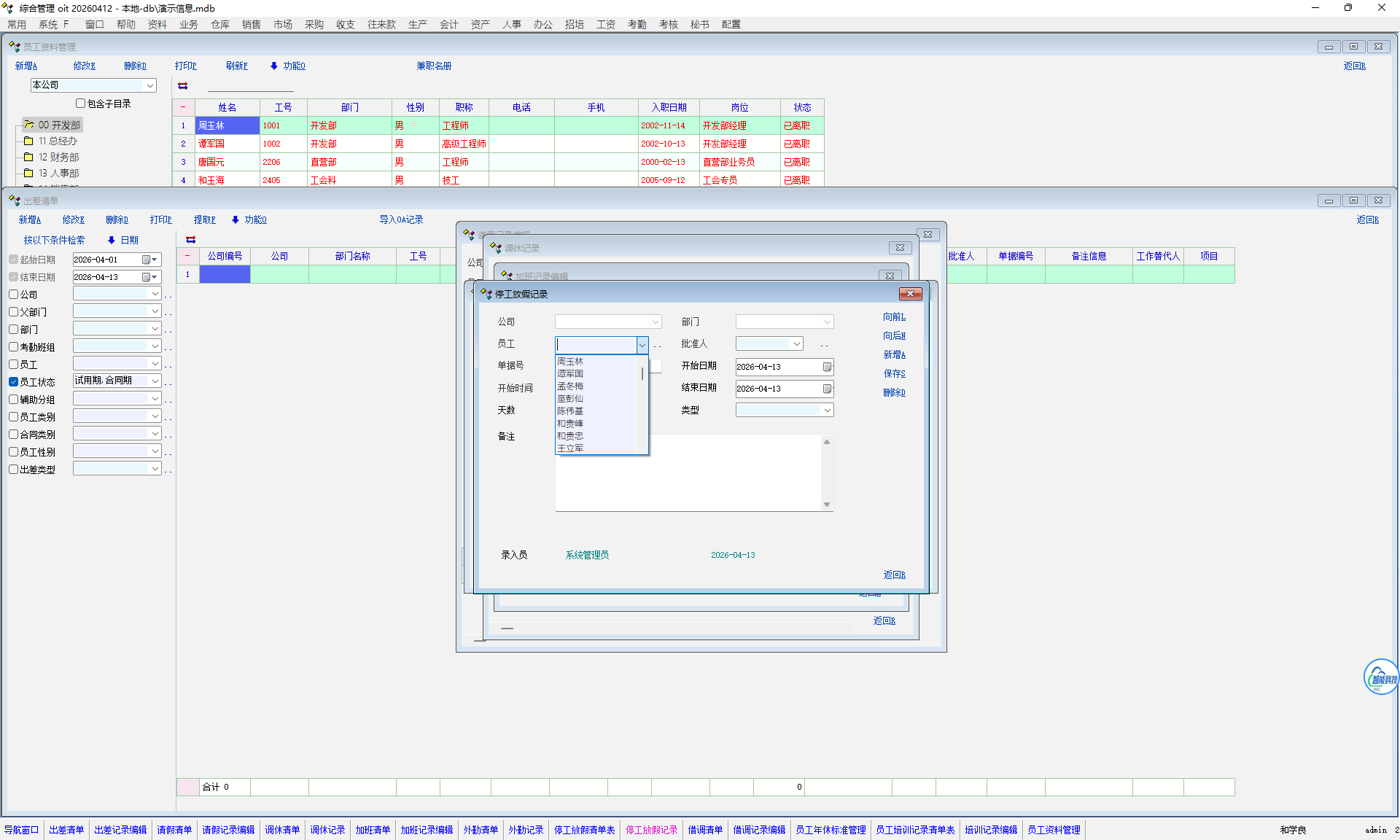 推荐_员工选择窗口屏蔽离职员工_人力资产