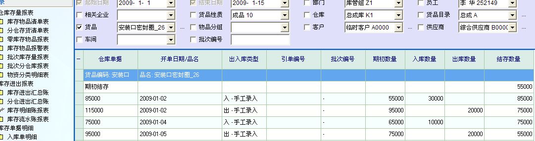 第一个问题,即《库存进出报表》下的《库存明细账报表》和《库存流水账报表》“结存数量”无合计。建议方便的时候添上。使用起来更好一些。