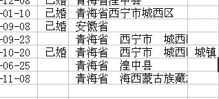 仔细看第一张图:比如“  已婚  ”的前面,“  青海省  西宁市  城中区  ”,都有一个空格,应该是“已婚”、“青海省西宁市城中区”。