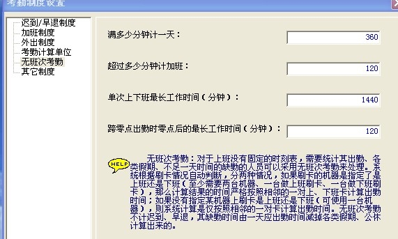 建议考勤班次里设置无班次考勤,现在软件这个版本只适合小单位用,如果用到大点的企业就很难排班,工厂里员工不是固定班次,不是固定人员,所以建议弄无班次考勤。