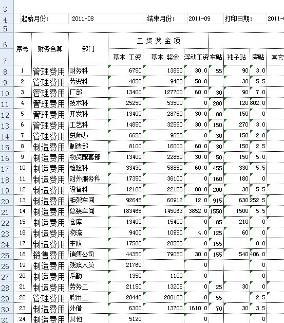 另我想在报表的最后,能否将同一类财务合算分类的应发工资分别汇总,例如:“管理费用:53654.00  制造费用:456843.00  销售费用:754225.50”。