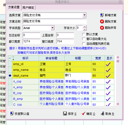 操作--参数配置--明细列表显示定制(前三栏是黄色的,如何可以去掉,求解)