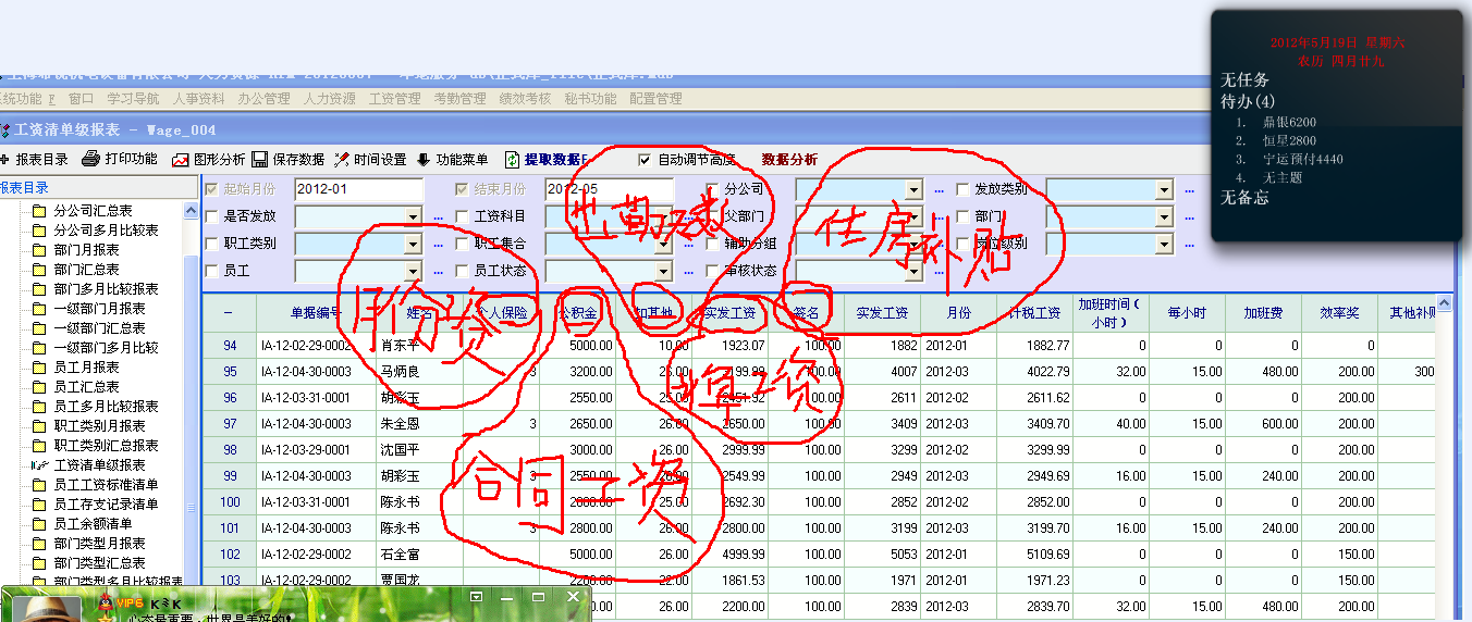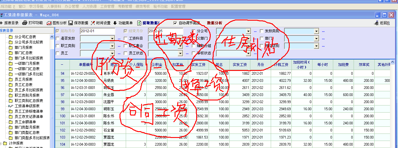 在人力资源软件中,我发现了工资清单级报表显示目录的错误。