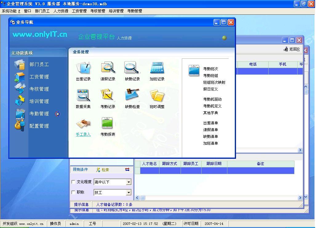 2007-02-13 人力资源管理系统测试体验版本3.0.02发布啦,欢迎试用_人力资产