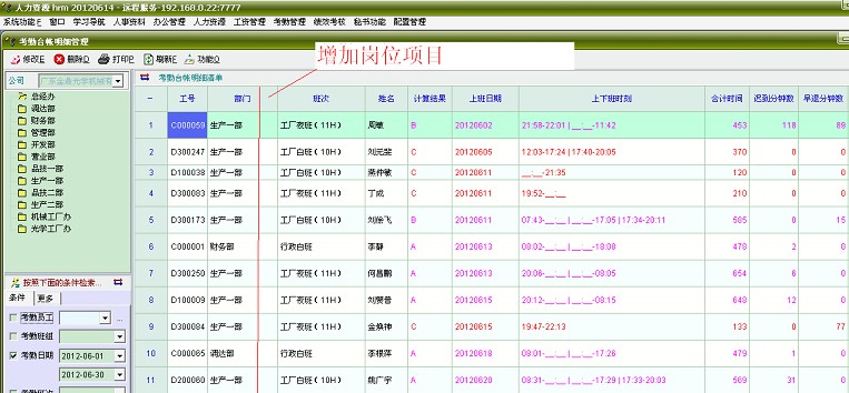 原创_如何给考勤日帐和月帐中增加岗位项目_人力资产