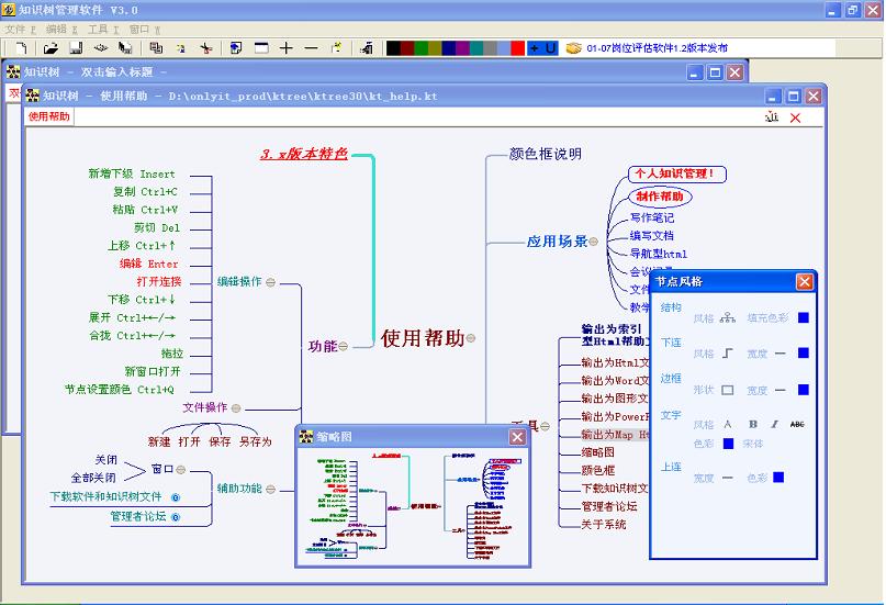 知识树软件是一款绿色软件,可以用于写作笔记、导航型html、会议记录、文件索引、教学演示、制作帮助等,非常方便,只有不到1兆大小,免安装解开直接运行