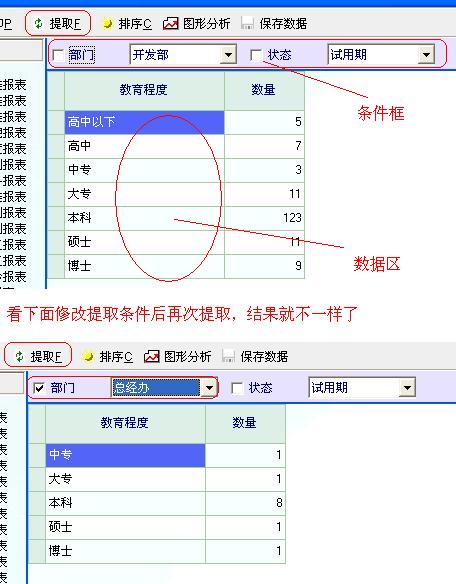 就是右边数据区上方的条件框,你可以设置里面的参数,设置好了后点击 提取 就会刷新数据。