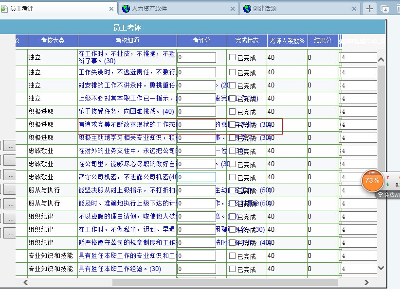 2、指标的基准分在员工进行考评时无法显示哩;