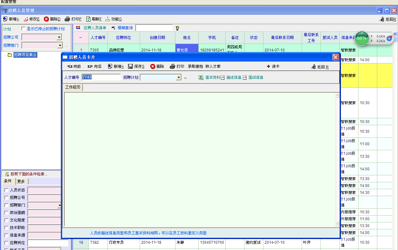 是应聘人员的 工作经历导入  不是个人资料里面的工作经历