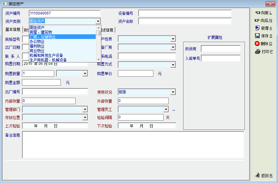 提个小建议,如图,在新增资产时,选择新增资产类别的时候,下拉列表中的资产分类建议改为可点击收、合的分级目录形式。这样能容易分清容易查找所要的类别名称。尤其是固定资产和低值易耗品类别名称出现重复时。