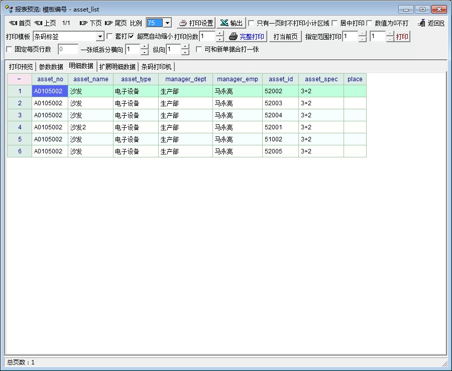 1号图显示检索出来数据,和能够为标签报表打印的字段