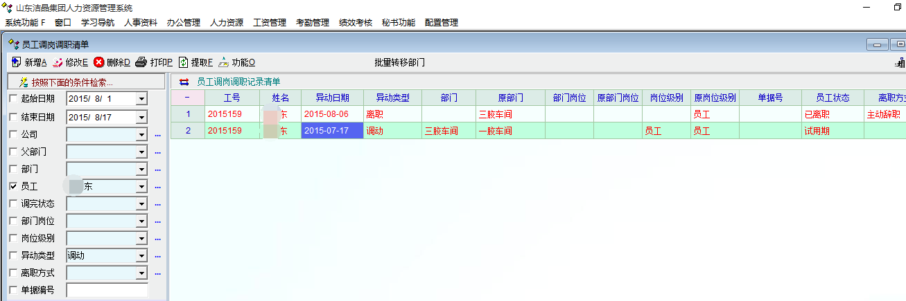 发现个人资料卡片中“岗位异动”只显示相应“状态”下的记录,并不是显示该员工的所有“岗位异动”的记录,比如状态为“已离职”的员工只能看到“离职”的那一条岗位异动记录,感觉这样不是很合理,可不可以改成显示所有“状态”下的“岗位异动”记录。