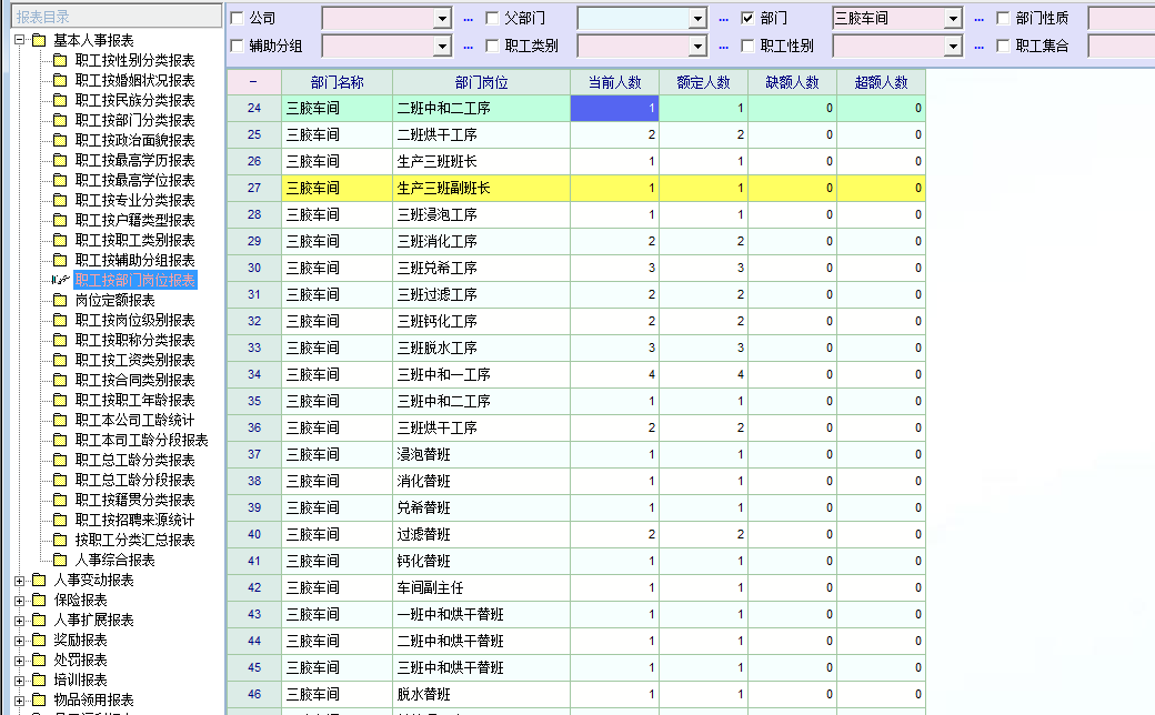 2、按部门岗位报表中,全公司按部门设置好以后,如某部门需新增岗位,则新增的岗位将显示在最后一行。生产型企业希望将岗位按照生产流程依次排列,这样就会发生新增岗位不能按照企业想要的顺序排列的问题,希望此处可以按照企业希望的顺序排列完成以后进行锁定(岗位报表支持自定义排序)
