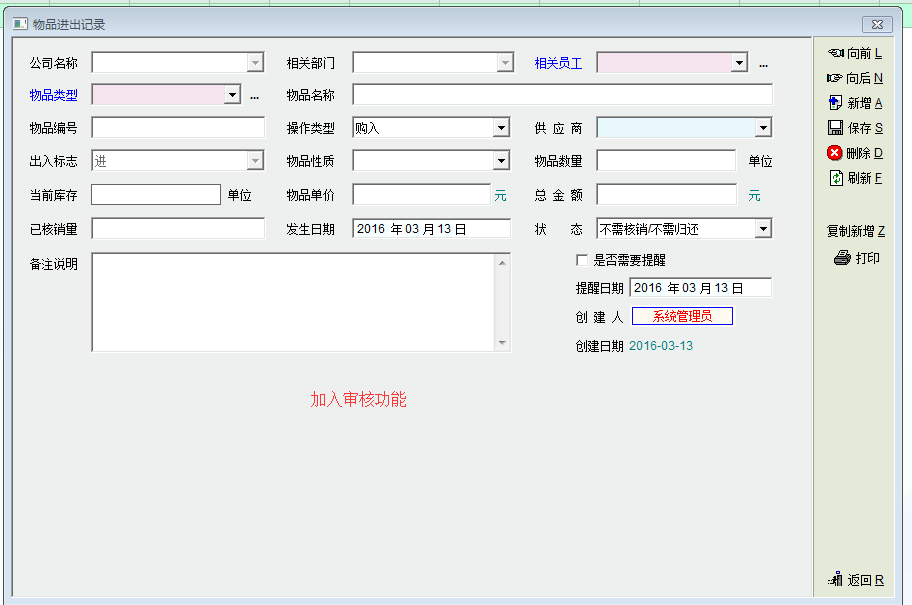 办公管理模块下的物品进出管理加入审核功能