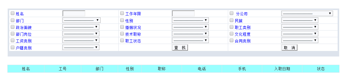 个人感觉比较实用,图一所示,浏览器访问员工信息管理页面,建议增加模糊查询或者工号查询或者身份证查询功能以达精准查询,现在需要精准查询的话要用姓名查,但姓名也有重名的呀。
