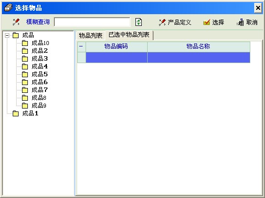 商品定义时,成品8它应该在“成品”目录下,现在跑到跟目录下(截图1)。在没有对(截图1)的目录进行任何改变的情况下入库,在“选择物品”时,“成品8”归位了,但“成品1”又跑到跟目录了。(截图2)