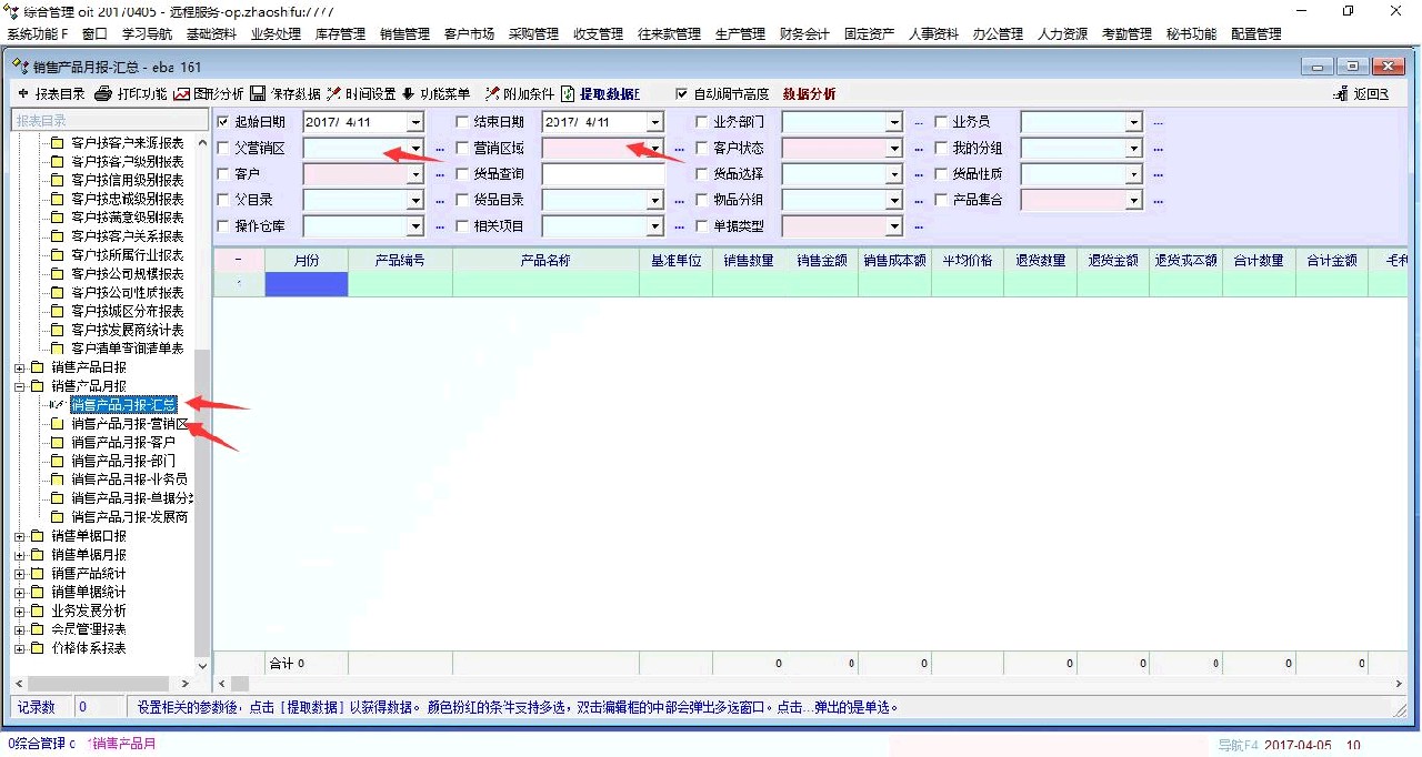 但事情并没有从此解决,直到我们这个月初检索某个业务员负责区域的销量,又出现了上述现象,如下图:在销售产品月报-汇总和销售产品月报-营销区(暂时不知其它报表会不会有问题)中只要选择父营销区或营销区域点检索就出问题。服务器后台程序退出后全公司停滞。 这个问题我们实在是无法解决,求高手支招。