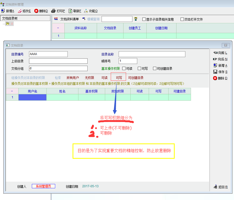 2、对文档进行标记,即添加添加标签或者作锁定标记,并设定添加了某种标签的文档不可删除,不可修改,除非有超级权限