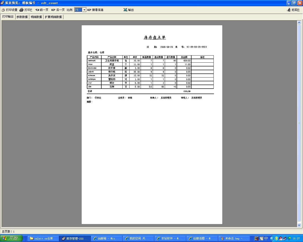 我在使用库存管理软件时发现一个问题,在使用盘点单时发现填表格时显示的内容和要打印出的不一样