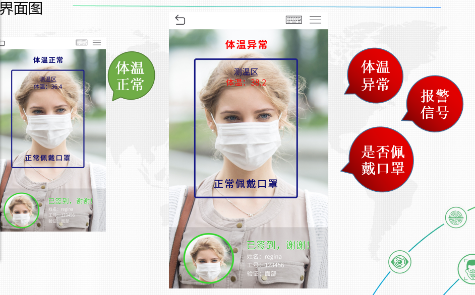 重点:门禁控制+人脸识别+红外线测温+口罩监测+自动报警