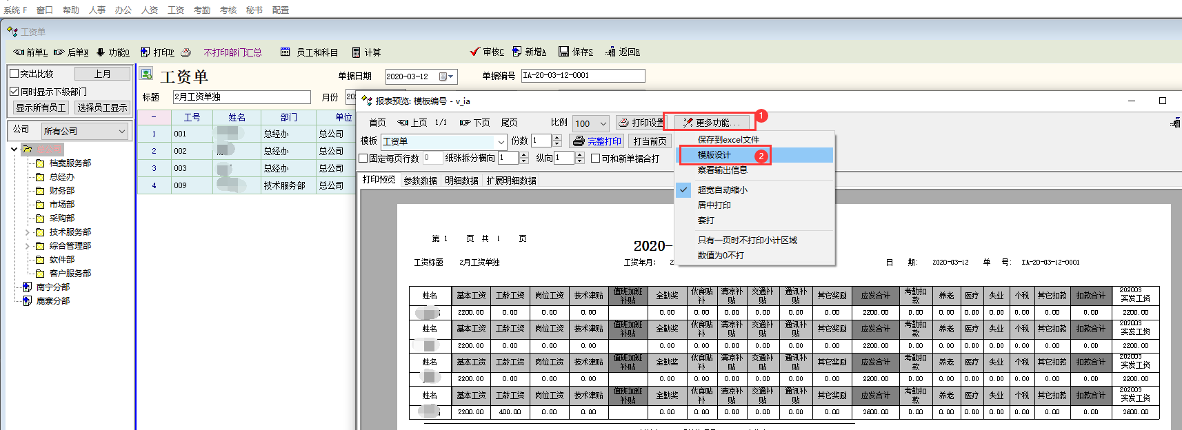 你打印时,可以选择更多功能=>模板设计