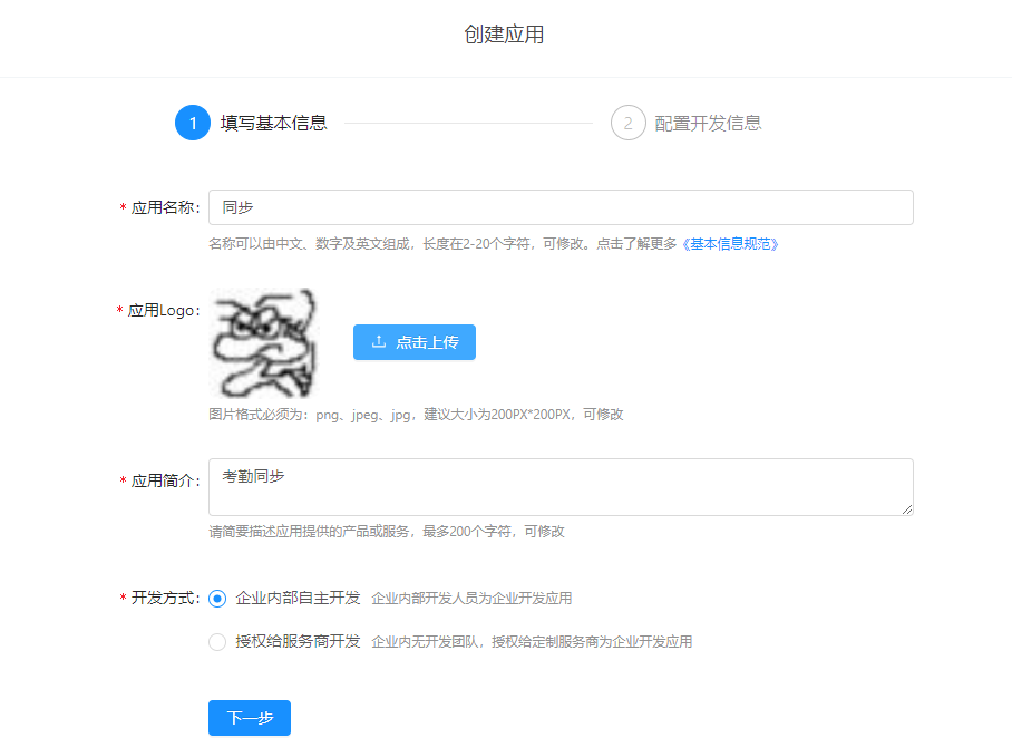 2、创建应用填写相关内容:填写基本信息