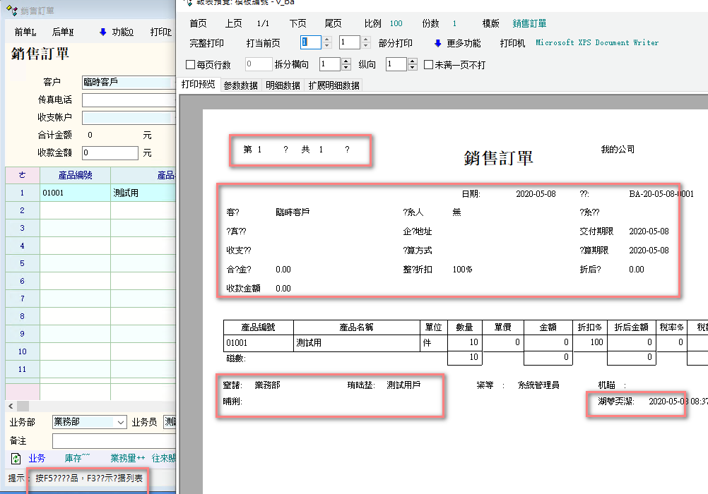 2、單據下面的提示F5什麼的,自動生成的打印模板