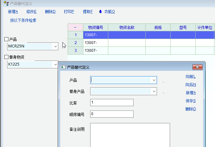 产品替代定义也没法输入产品。选择输入后还是空白的。