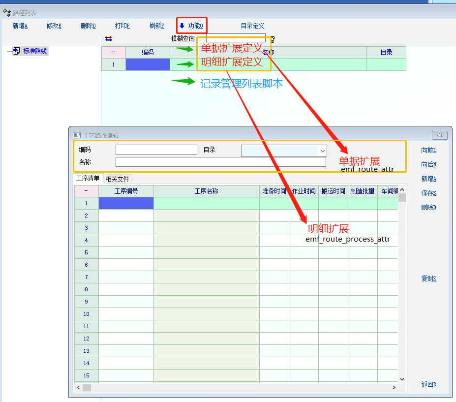 2、你这个工序路线界面,有很多“扩展”字段,不知如何实现的。