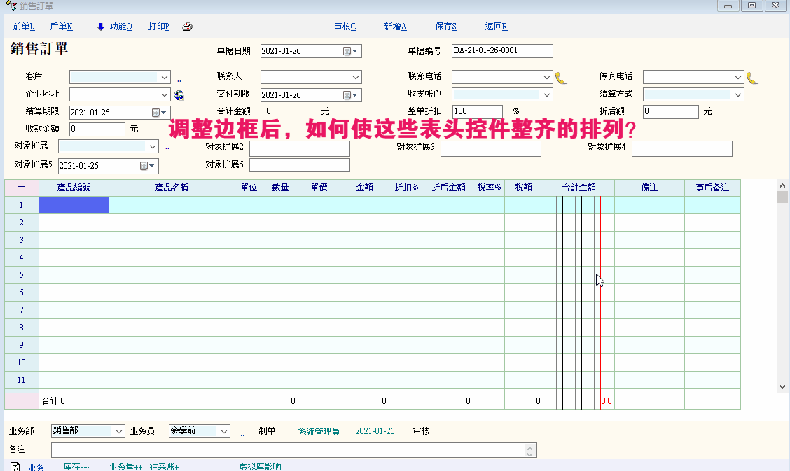 求助_调整边框后,如何使这些表头控件整齐的排列?_产供销