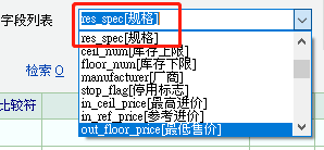 2、在自定义条件数据的界面里  字段列表及左比较值里的 res_spec 还是显示为规格