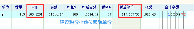 建议税价小数位跟随单价