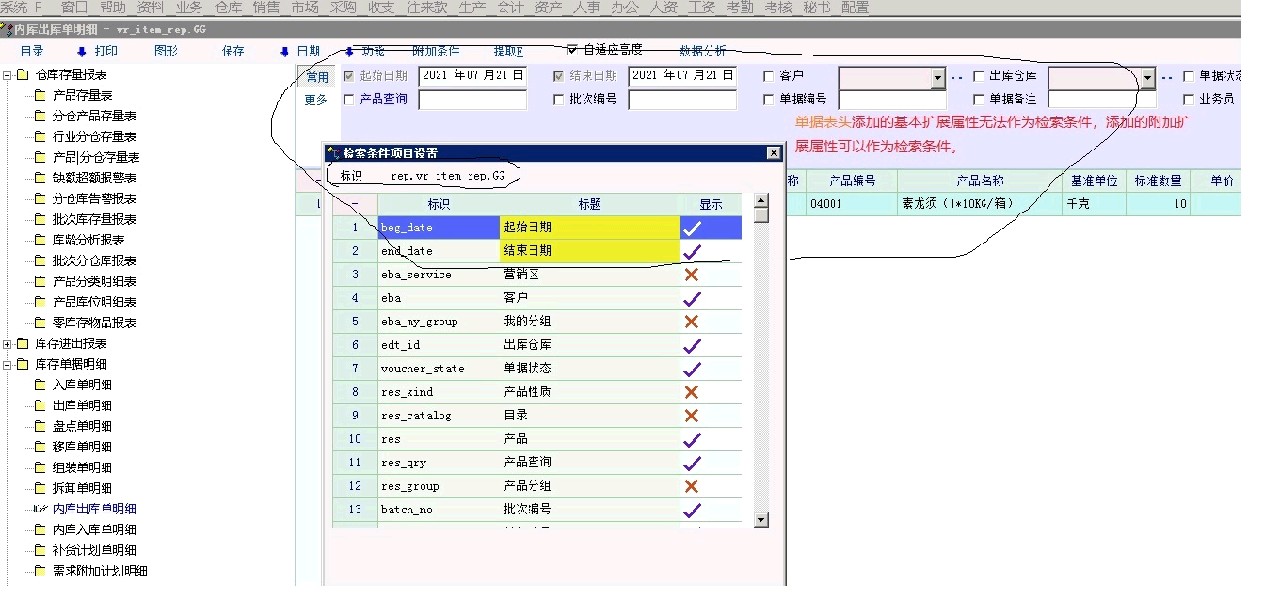 在入库单据里添加了一个字典型的附加扩展属性,比如入库类型:采购入库、退货入库等,在入库单据明细报表的检索条件里就会自动出现入库类型这个检索条件,如果把入库类型添加为基本扩展属性,在入库单明细里就不会出现这个入库类型的检索条件?这是为何?表头的基本扩展属性和附加扩展属性有什么区别?