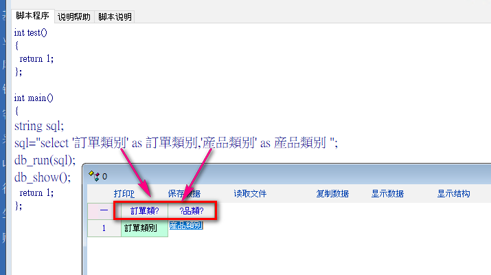 sql="select '訂單類别' as 訂單類别,'産品類别' as 産品類别 ";