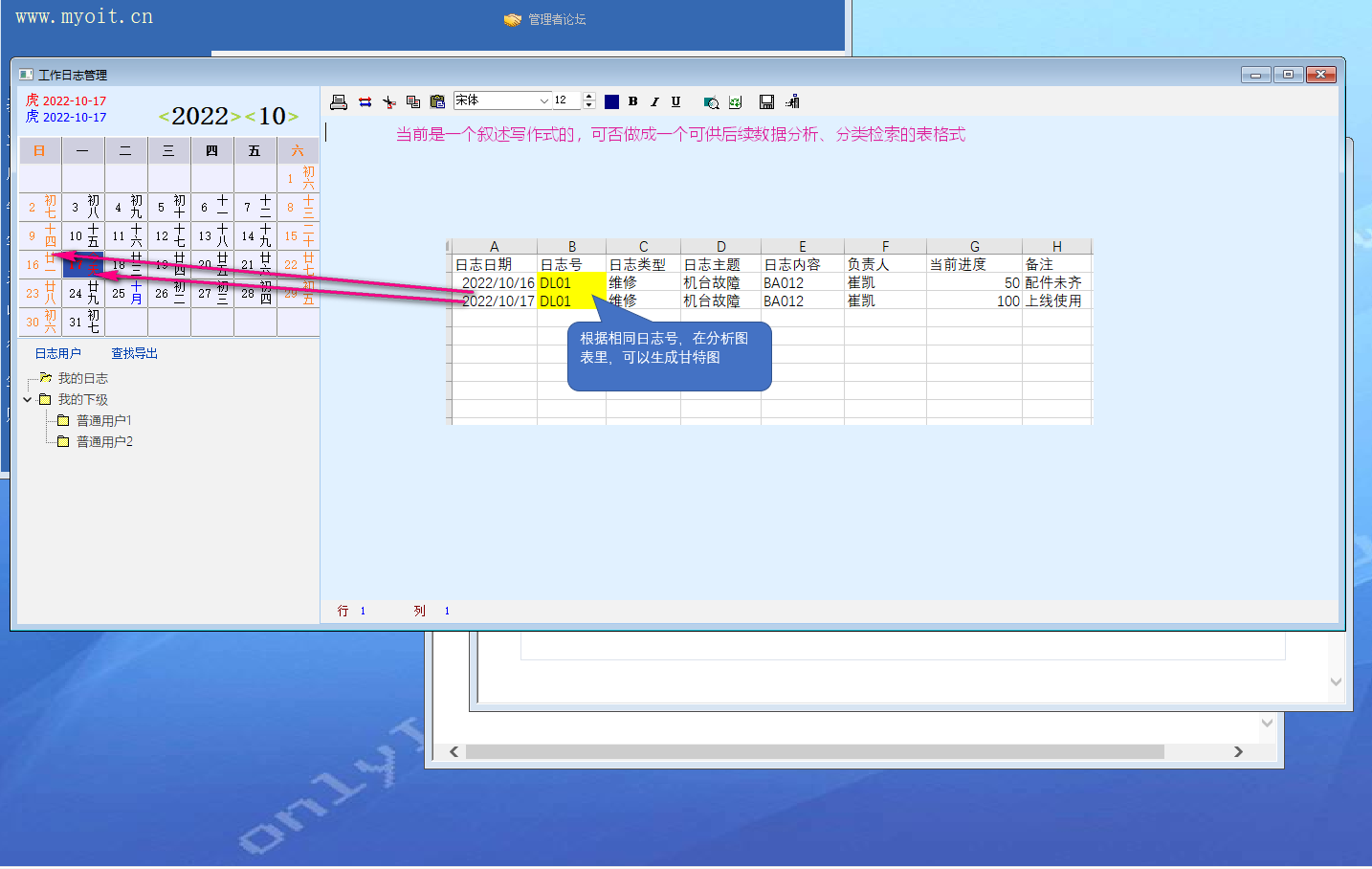 工作日志就是给操作员自己随便记记的,别的记录可以单独设计卡片。
