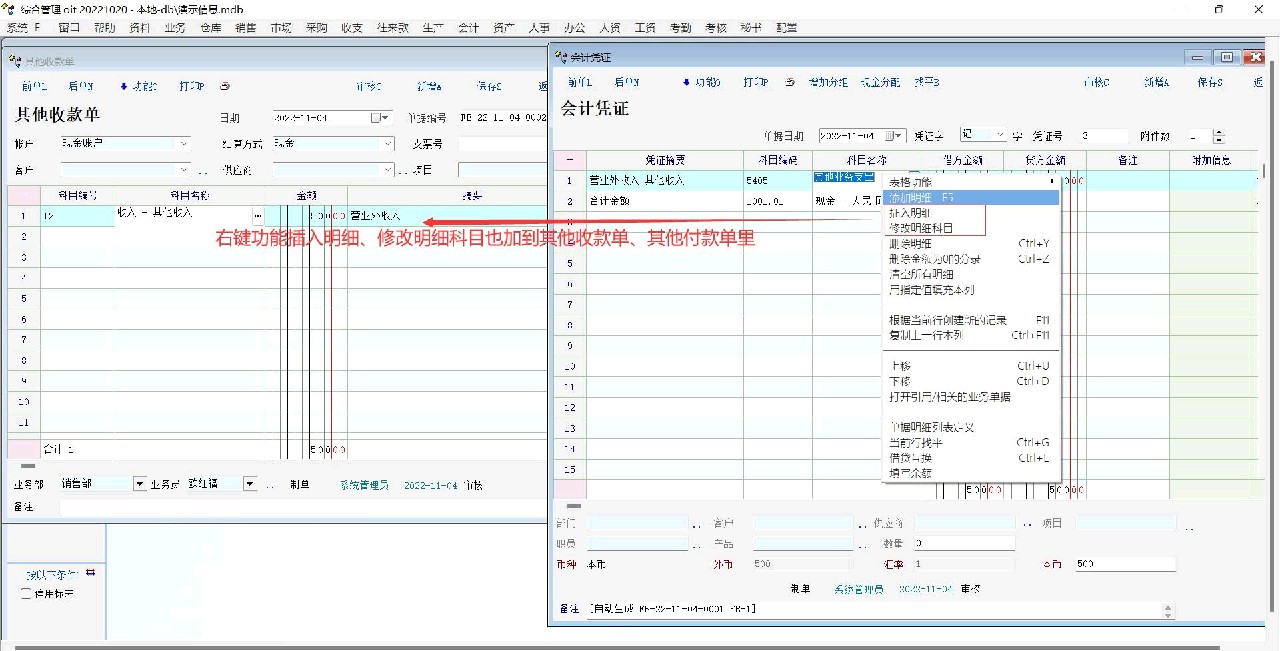 讨论_建议收支单据其他收款单、其他付款单如会计凭证增加右键菜单插入明细、修改明细科目功_产供销