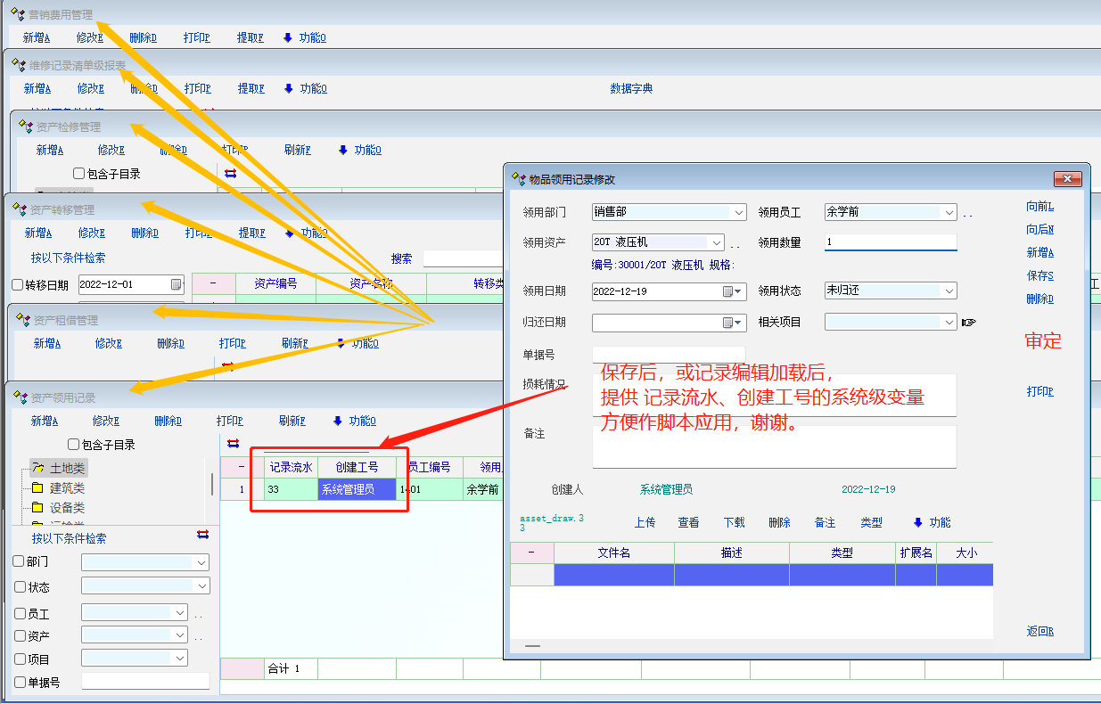 2、增加两个系统变量,类似 v_voucher_id  v_create_user_id