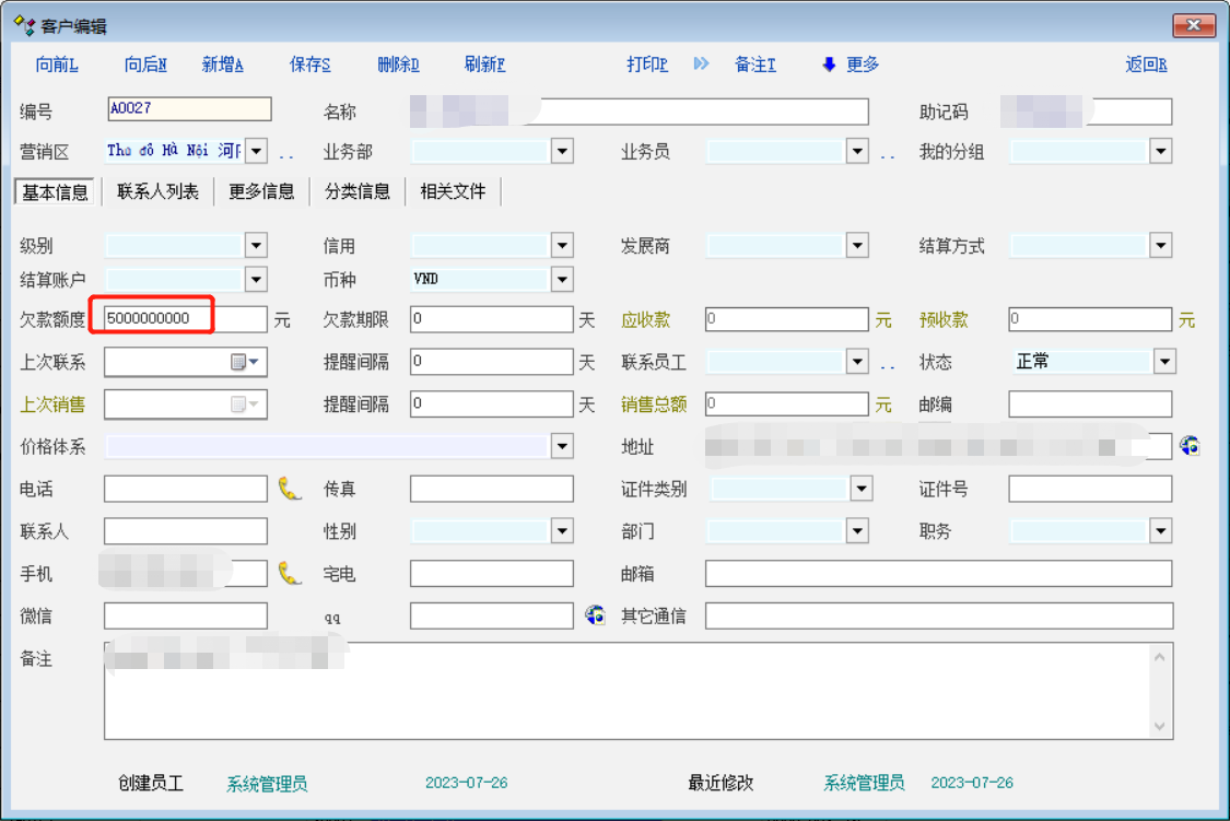 讨论_客户编辑界面信用额度50亿保存后再刷新会自动变成一组随机数值_产供销