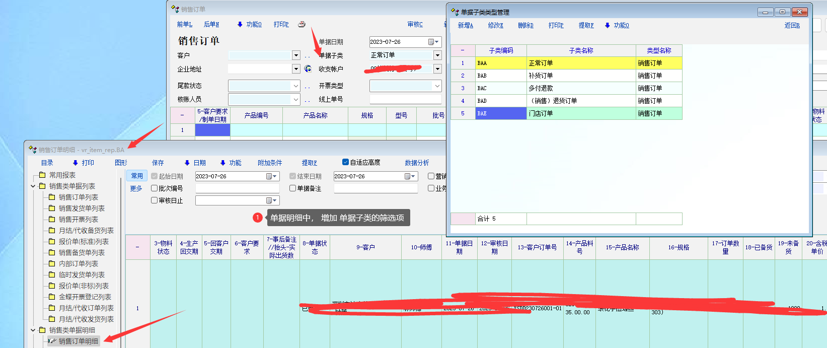 建议 销售订单明细 或 所有单据明细中 增加单据子类型的筛选项_产供销