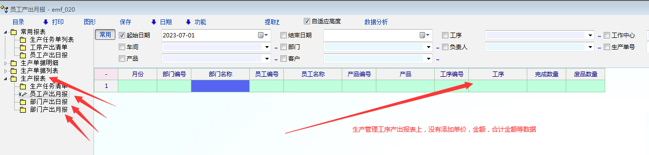 生产管理报表,工序产出单,日报,月报等急需添加单价,金额,合计金额。