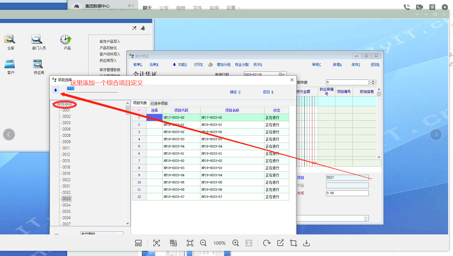 如见下图:从编码凭证里添加项目大类