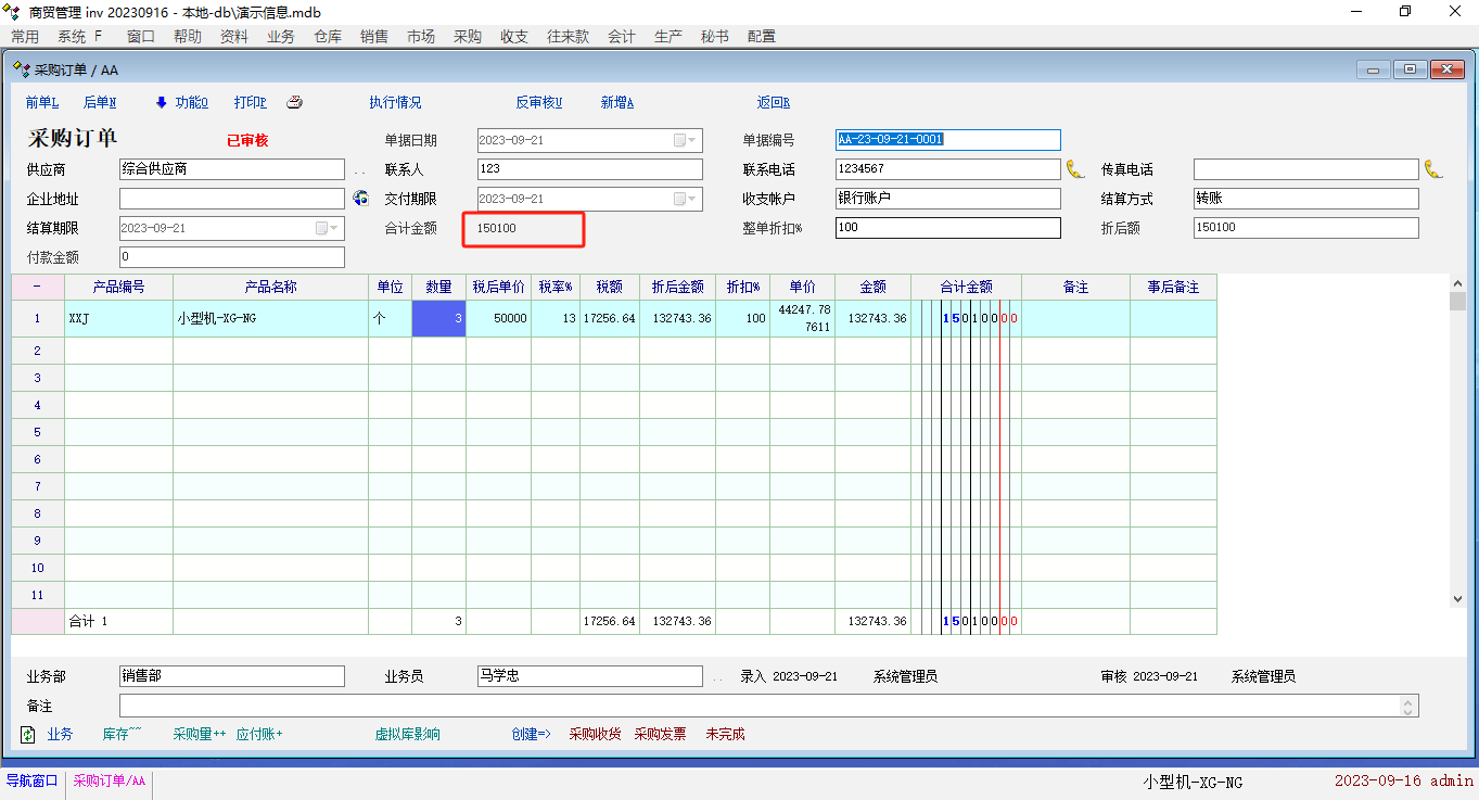 3、发现每录入一个批号(每增加一行),每行合计金额都会多出100元