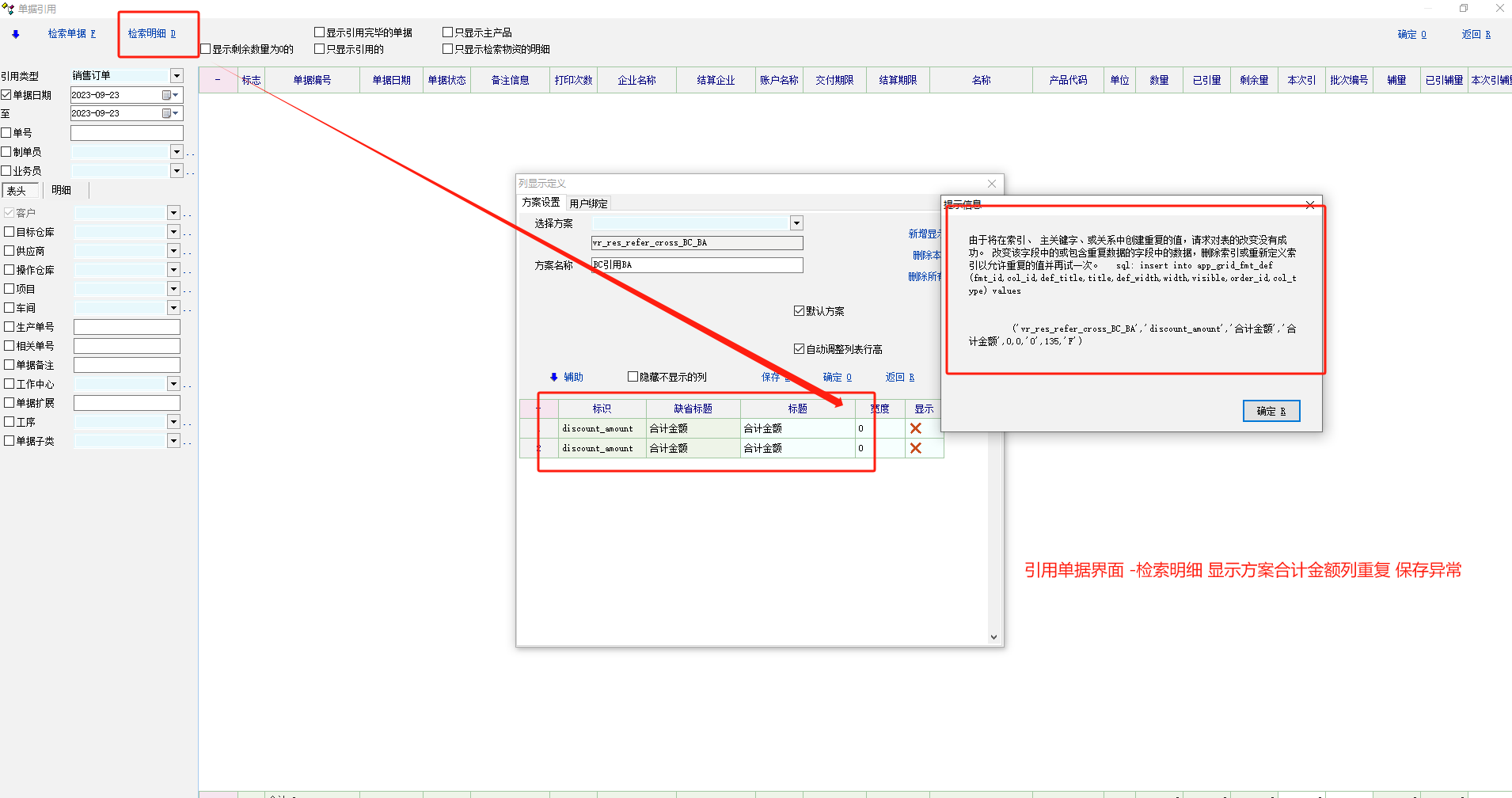 推荐_引用单据界面 -检索明细 显示方案合计金额列重复 保存异常_产供销
