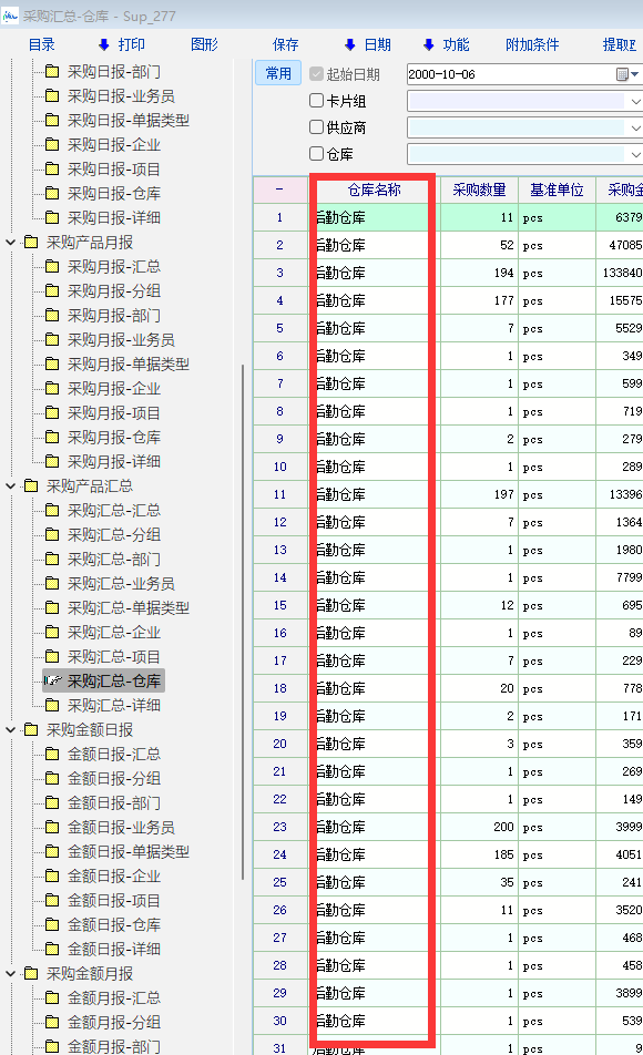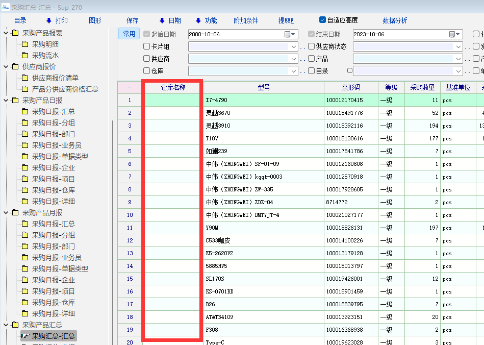 上述报表仓库名称字段数据不同步