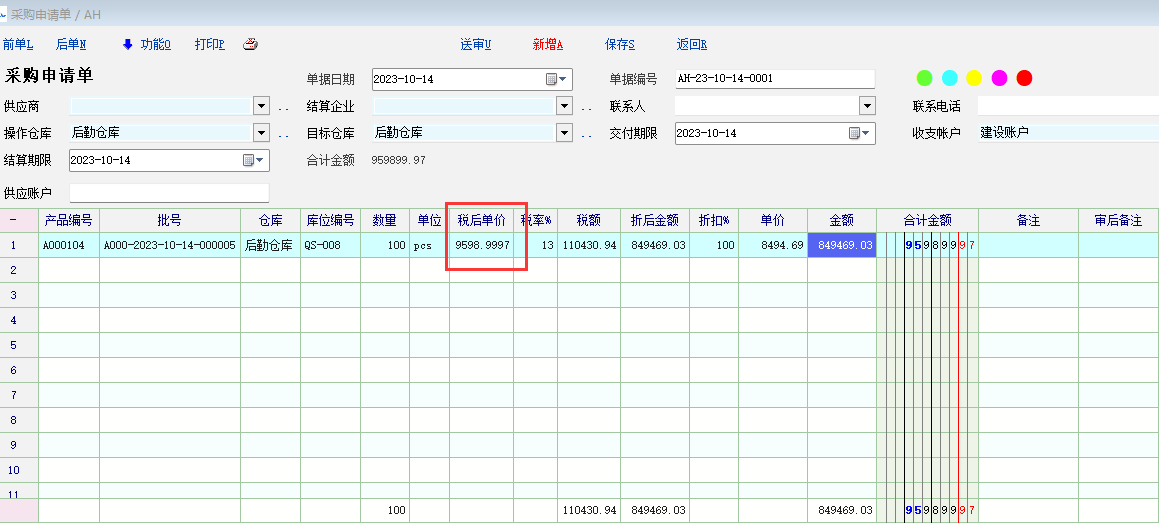 涉及的包括(单价,金额,税额,税后单价,折后金额)