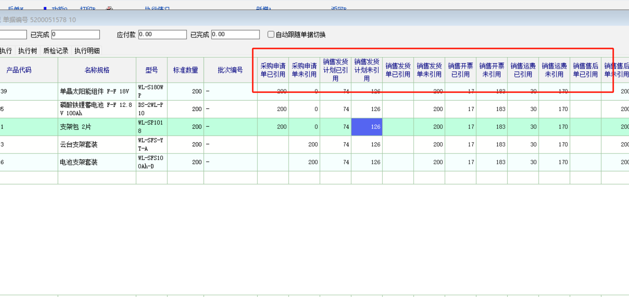 目前, 执行情况的 显示方案, 是所有单据共用 1个, 并且只有前面几列是可以调整顺序的。