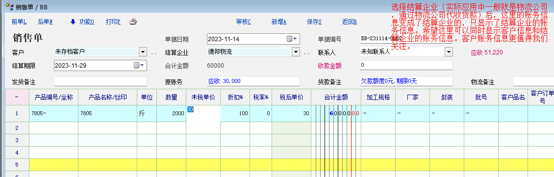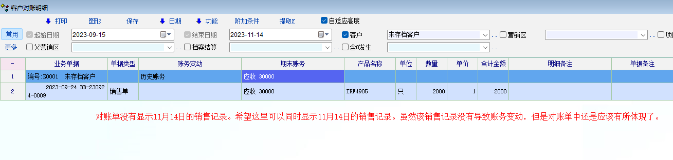 客户对账单中也没有体现该笔销售记录。虽然该笔销售因为通过第三方结算,使得账务信息没有任何变动,但是从实际应用习惯和思维逻辑习惯上来说,对账单还是应该体现出该笔记录的。