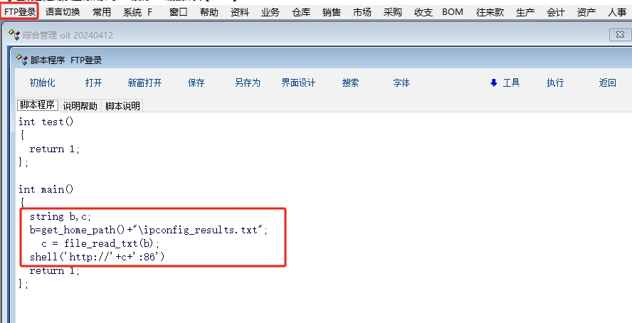第四步:添加登陆菜单,执行指定脚本,在指定脚本里面获取这个文本文件内容