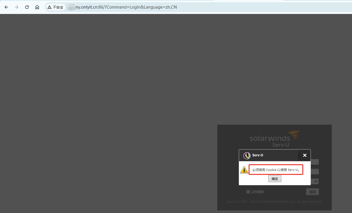 用虚拟域名会报错没有启用Cookie,不能登陆,用IP登陆就不会有这个提示,可以正常登陆
